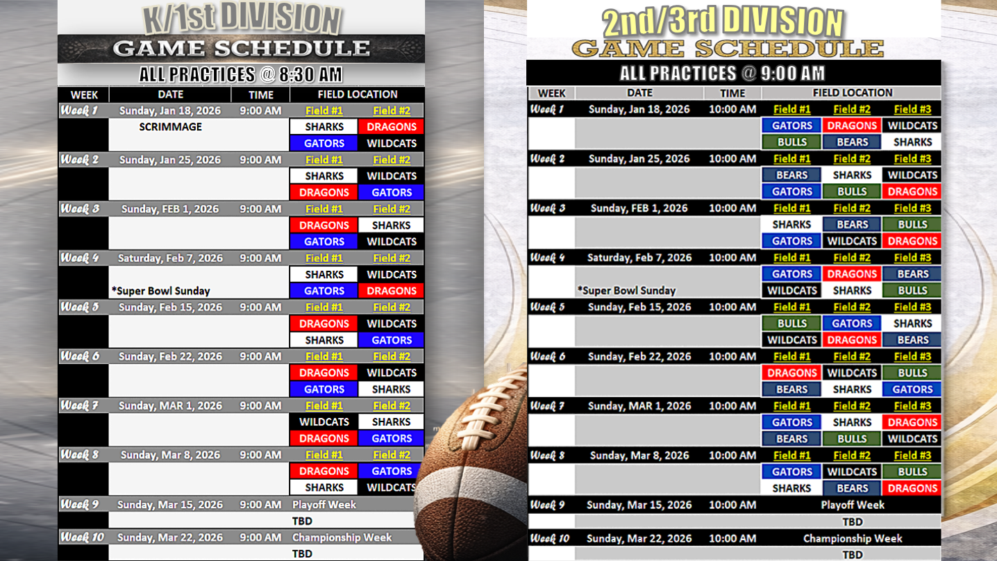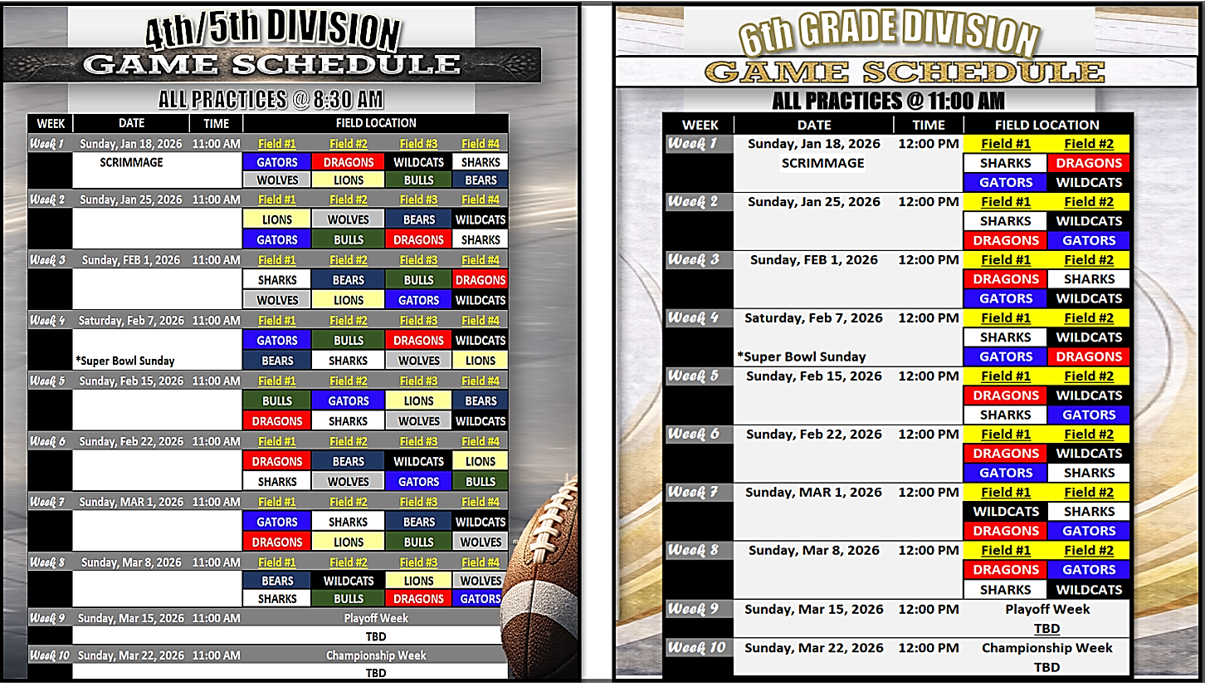 GAME SCHEDULE All teams will play in all 10 weeks regardless of their playoff seeding and/or outcome DIVISION STANDINGS