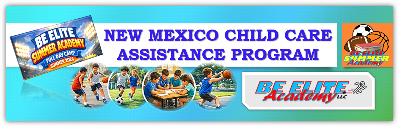 REGISTER TODAY | SPACES ARE LIMITEDNew Mexico Child Care Assistance Program Participants CLICK HERE TO REGISTER FOR THE BE ELITE SUMMER ACADEMY TO FIND OUT MORE ABOUT UNIVERSAL CHILD CARE AND HOW TO APPLY | CLICK THE LINK BELOW CLICK HERE FOR MORE INFORMATION